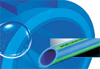 - Трубы - синего цвета с четырьмя зелеными полосами. Поставляются длиной 4 м. Для монтажа используются стандартные фитинги "Фузиотерм".
