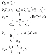 - Тепловой поток от внутреннего воздуха зала бассейна через ограждение (заполнение оконного проема) к наружному воздуху: Q1 = k1Fок(tп – tн), Вт.