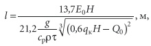 В этом сечении скорости восходящей искусственной струи и ниспадающего естественного потока равны между собой. Предполагается, что место встречи струй находится выше той области, которая как раз и подлежит защите — в противном случае в условиях, которые мы рассматриваем, не вся требуемая часть внутренней поверхности витражных блоков будет защищена от выпадения конденсата. Для расчета воспользуемся формулой определения дальнобойности струй, приведенной в работе [6]: