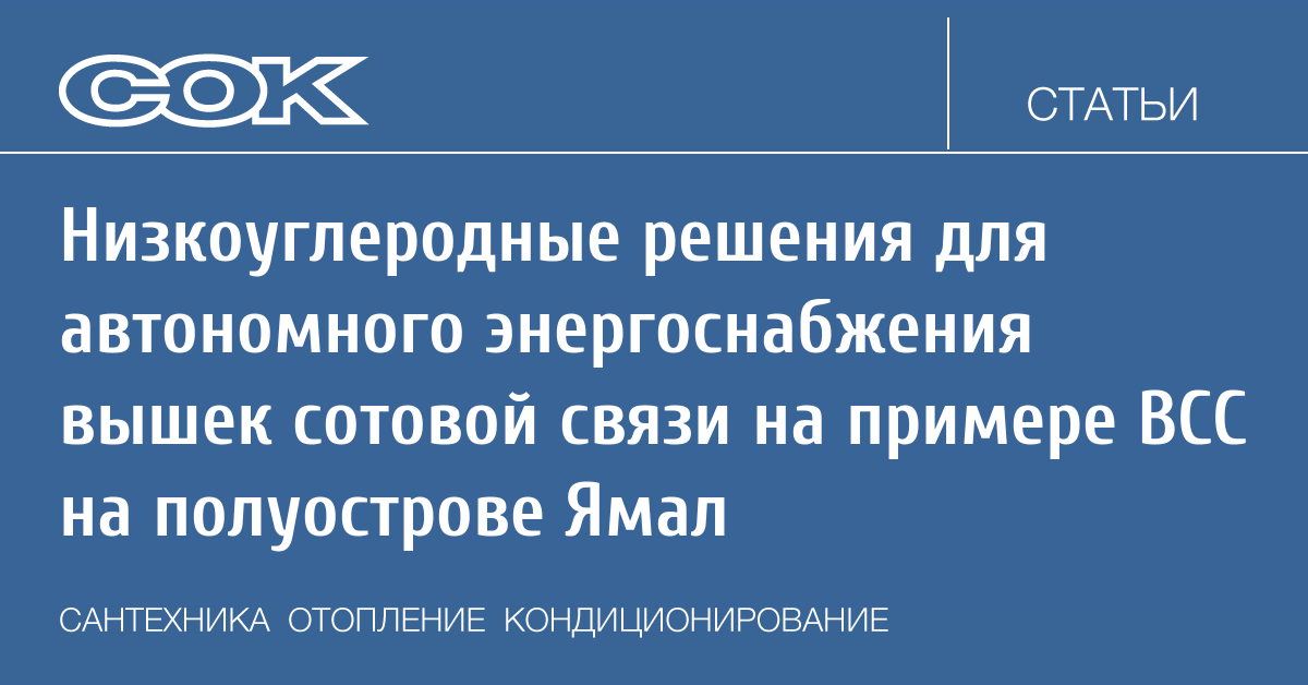 Сегодня связь является важным звеном для обеспечения жизнедеятельности населённых пунктов и промышленных объектов в мире и в России. Связь необходима как для обеспечения безопасности и жизнеобеспечения местного населения, так и для нужд промышленных объектов, в первую очередь для нефтегазовой отрасли. Базовые станции сотовой связи в удалённых районах Крайнего Севера, включая Ямало-Ненецкий автономный округ, зачастую функционируют в условиях полной изоляции от централизованных электрических сетей.
