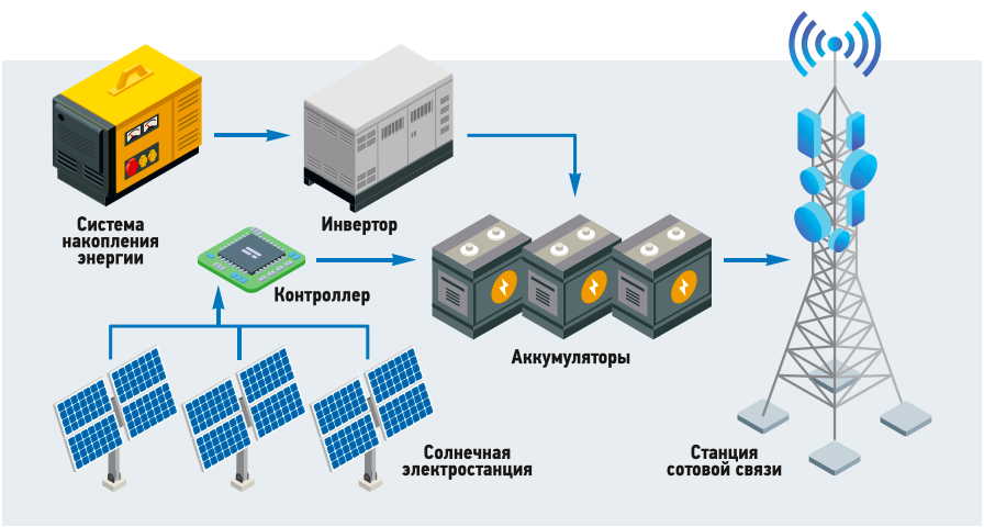 Применение возобновляемых источников энергии и накопителей энергии одновременно с дизельной генерацией можно считать типовыми решениями для изолированных базовых станций сотовой связи. Вместе с тем примеров по полной замене дизельного топлива на комбинацию «ВИЭ + накопитель энергии» практически нет. Это связанно с пока ещё высокой стоимостью альтернативных решений, рассмотрение которых может быть целесообразным только при высокой стоимости дизельного топлива.