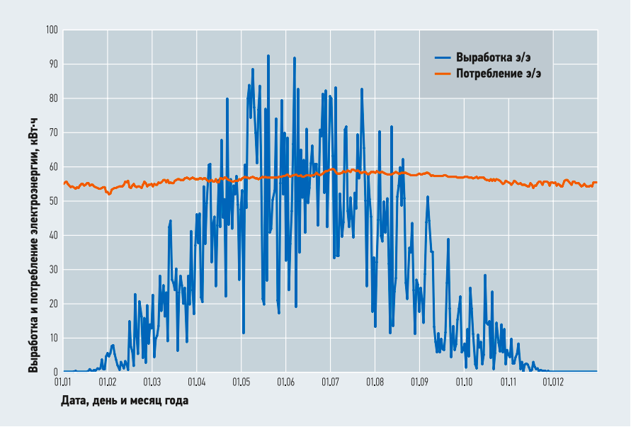 Рис. 3. Выработка электроэнергии солнечной электростанцией (СЭС) гибридной АГЭК