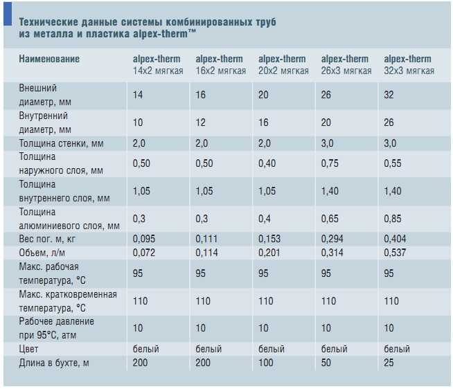 Внутренняя и лицевая стороны трубы alpex-therm™ изготовлены из полимеризированного полиэтилена, между которыми проложен слой алюминия, сваренного лазером в газовой среде по технологии TIG. Такая технология обеспечивает незаурядную стабильность формы и давления. Новый трубный материал фирмы «Фрэнкише» соединил в себе все преимущества металла и пластика. По отношению к стальным металло-пластиковые трубы имеют ряд преимуществ: