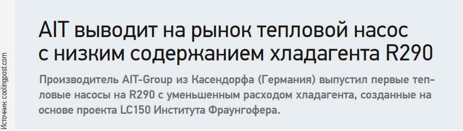 Производитель AIT-Group из Касендорфа (Германия) выпустил первые тепловые насосы на R290 с уменьшенным расходом хладагента, созданные на основе проекта LC150 Института Фраунгофера.