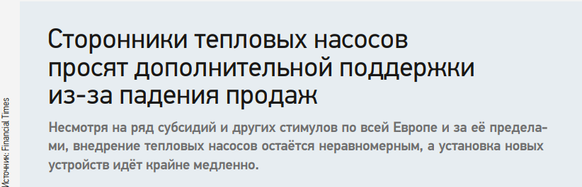 Данные Европейской ассоциации тепловых насосов (European Heat Pump Association, EHPA) о рынке свидетельствуют о том, что после нескольких лет устойчивого роста продажи тепловых насосов в 2024 году упали на 21%, по сравнению с предыдущим годом, до 2,2 млн единиц (на основе данных из 14 стран), в результате чего общий объём достиг примерно 26 млн единиц. Продажи резко упали в Германии и Бельгии. Единственным «светлым пятном» стала Великобритания, где продажи выросли на 63%, но с низкой базы.