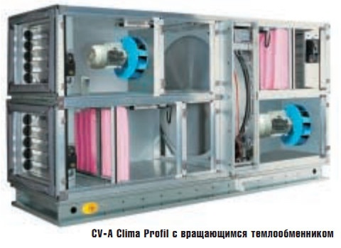 Применение новых центробежных вентиляторов без корпуса (некоторые специалисты называют их радиально-осевыми) позволило сократить вес и габаритные размеры агрегатов. Длина установок теперь уменьшилась в среднем на 1,5 м. Новый вентилятор имеет повышенную энергетическую эффективность. Его акустические характеристики значительно лучше, чем у корпусных вентиляторов. В некоторых полосах частот акустического спектра снижение уровня шума достигает 9 дБ, что позволяет в ряде случаев отказаться от шумоглушения. Еще одно из преимуществ нового вентилятора — возможность отвода воздуха от установки в любом направлении, нет необходимости «успокаивать», стабилизировать воздушный поток прямым участком воздуховода.