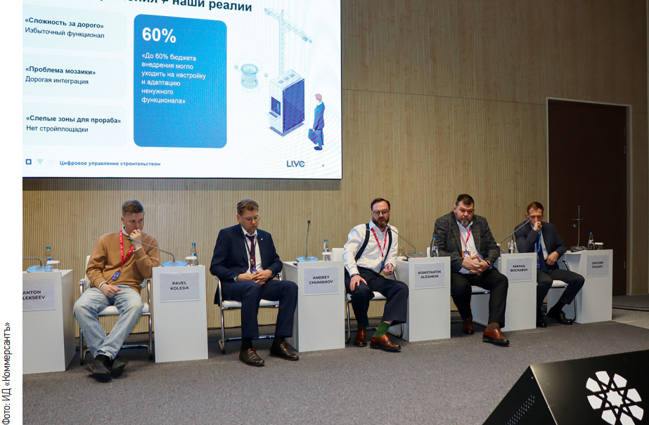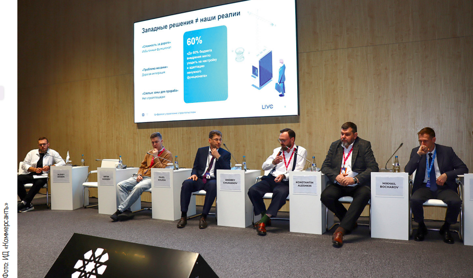 Переход промышленности и строительства на отечественные цифровые решения стал одной из главных тем дискуссии. Начальник управления внедрения и развития ПО компании «Осмокод» Константин Алешкин — представитель группы «Полипластик», крупнейшего российского производителя полимерных труб и разработчика IT-решений для строительства и ЖКХ, — представил позицию практиков, совмещающих опыт бизнеса и разработки. По его словам, копирование западных моделей цифровизации не оправдало себя: при внедрении систем вроде Primavera или Project использовалось лишь 20% функционала, тогда как до 60% бюджета уходило на ненужные лицензии. Каждый второй рубль расходовался на возможности, которые не применялись.