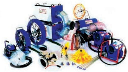 Тип используемой очистной машины зависит от размера очищаемого воздуховода. При малом диаметре воздуховода может использоваться дрель с присоединенным к ней гибким валом, на конце которого находится щетка или малая очистная машина AirPower M2001. Этот способ идеально подходит для воздуховодов малого диаметра — до 300 мм. При среднем диаметре воздуховода используется установка AirPower ReelMaster.
