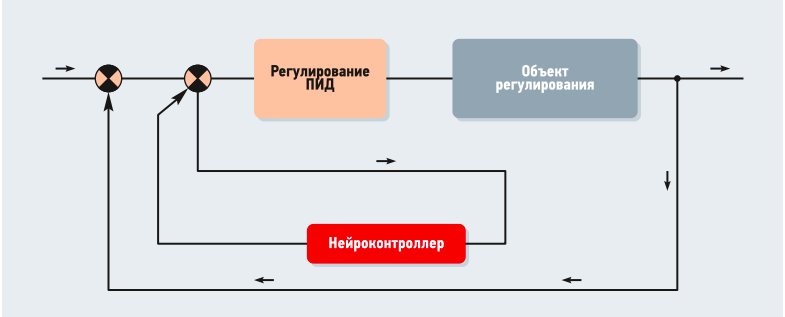 Рис. 1. Структурная схема системы регулирования с ПИД-регулятором и нейроконтроллером