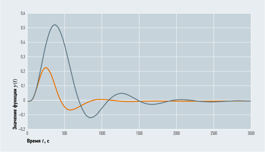 Рис. 3. Графики переходной функции по каналу возмущения АСР с ПИ- и ПИД-регулятором
