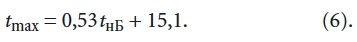 В данном случае коэффициент корреляции несколько ниже и составляет примерно 0,9, но это все же достаточно большая величина, поэтому формула (6) также является достаточно удачным приближением реального соотношения между tmax и tнБ.