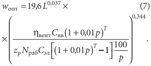 Однако показатель степени при расходе воздуха весьма близок к 0,5, что позволяет предположить очень слабую зависимость оптимальной скорости воздуха от воздухо-производительности, что и будет показано ниже. Для данной задачи к повышению dопт приводит еще и увеличение значений Nр и zр, потому что это тоже вызывает рост фактического потребления электроэнергии. Выражая оптимальную скорость воздуха через его расход и оптимальный диаметр воздуховода, получаем следующую зависимость [м/с]: