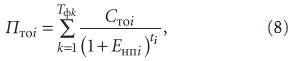 где Стрi — среднегодовые расходы на текущий ремонт ЗВji; ti — год эксплуатации ЗВji; Тфi — расчетные сроки службы ЗВji (см. табл. 8); Енпi — нормативы приведения сравниваемых вариантов для ЗВji к одному моменту времени, можно принять 0,1, если нет более точных данных. Расходы на текущее обслуживание ЗВji