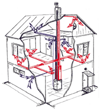 На сегодняшний день это один из самых перспективных видов отопления домов, коттеджей и производственных помещений. Оборудование для систем воздушного отопления поставляется в нашу страну специально по заказу ООО "Вик-системы", которое имеет эксклюзивное право на его реализацию. Система воздушного отопления проста и надежна, состоит она из одного или нескольких воздухонагревателей, воздуховодов из оцинкованного железа и специальных решеток, через которые воздух подается в помещение, а затем по обратным воздуховодам поступает в теплообменник воздухонагревателя. Таким образом, система работает на рециркуляции с подмесом наружного воздуха.