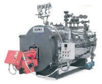 Факел горелки, работающей под наддувом, формируется вдоль горизонтальной оси цилиндрической тупиковой топки от фронта котла, с возвратным движением к фронту и разворотом к периферийно расположенному в водяном объеме котла пучку жаровых труб конвективной поверхности теплообмена. Продукты сгорания по жаровым трубам конвективной поверхности поступают в газосборный коллектор в задней части котла, оснащенный газоотводящим патрубком. Для интенсификации теплообмена все трубы конвективной поверхности оснащаются шнековыми турбулизаторами из нержавеющей стали. Рабочее давление — 12 и 15 бар Топливо — природный газ, дизельное топливо, топочный мазут.