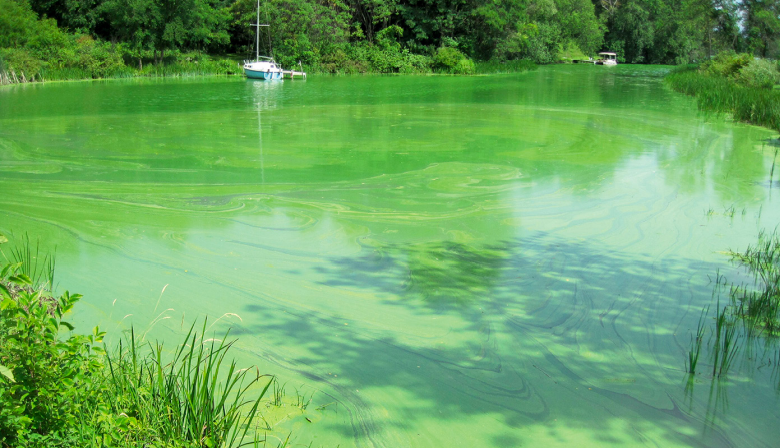 Пример эвтрофикации («цветения» и зарастания) водоёма
