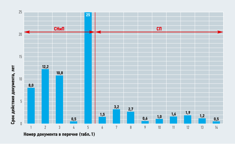 Рис. 1 наглядно иллюстрирует различие во времени действия и использования нормативных документов (табл. 1).