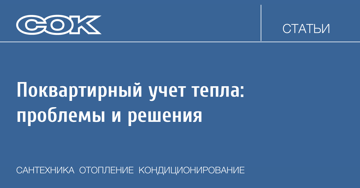 По мнению большинства специалистов, сочетание поквартирного учета и регулируемого потребления тепла обеспечивает максимальные возможности для реализации потенциала энергосбережения в жилых зданиях. У абонентов появляется стимул следить за расходом тепловой энергии точно так же, как, например, за расходом электричества. Системы поквартирного учета становятся актуальными для России и находят здесь применение. Однако для их реализации необходимо соблюдение определенных технических условий. Кроме того, самая современная и точная система учета может оказаться нерабочей, если не решен вопрос о порядке расчетов между потребителями в многоквартирном доме и не определены пути его урегулирования.