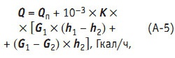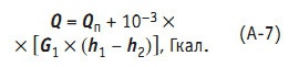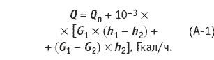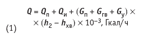 где Qп - тепловые потери на участке от границы балансовой принадлежности системы теплоснабжения потребителя до его узла учета (расчетная величина, которая указывается в договоре); Gп, Gгв, Gу - часовые потери массы теплоносителя, связанные с подпиткой независимой системы отопления потребителя, отбором теплоносителя на горячее водоснабжение из системы отопления и несанкционированными утечками в результате неплотности теплосети, т/ч; Gп + Gгв + Gу = G1 - G2 - для узла учета на рис. 1; Qи = G1 h1 - h2-3 - тепловая энергия, израсходованная потребителем, по показаниям теплосчетчика, Гкал/ч; G1, G2 - часовая масса теплоносителя, циркулирующая в прямом и обратном трубопроводе теплоносителя, т/ч; h1, h2, hхв - теплосодержание теплоносителя в прямом и обратном трубопроводе теплоносителя и исходное теплосодержание подпиточной воды, ккал/кг.