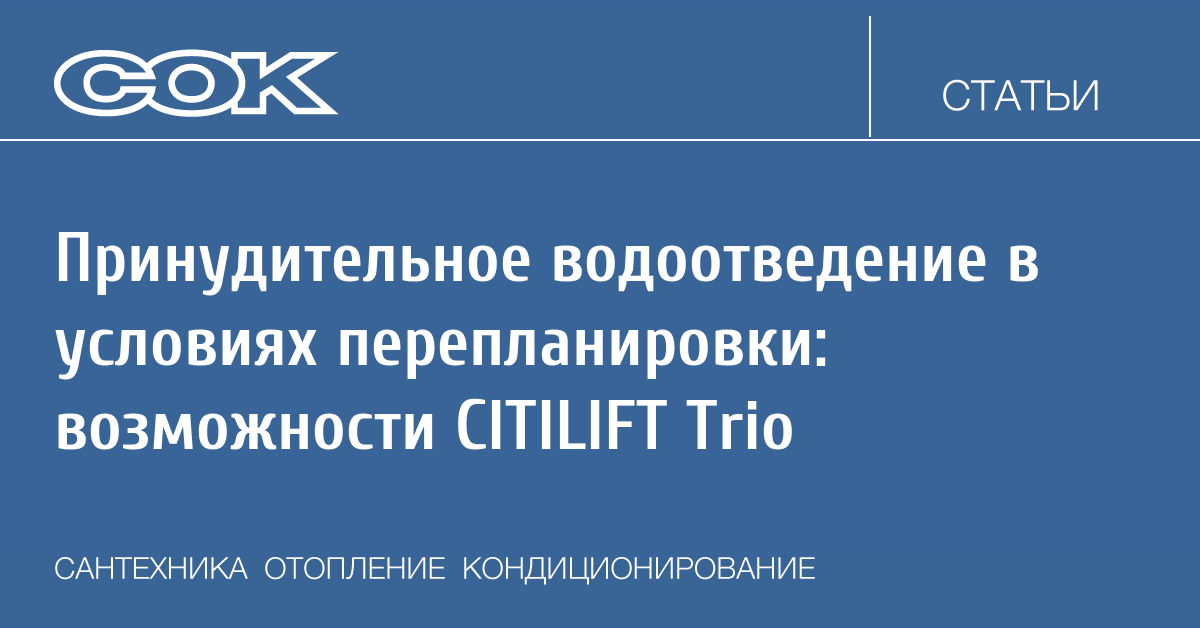 Современные системы принудительного водоотведения позволяют снять бóльшую часть этих ограничений и реализовать смелые идеи, которые раньше считались технически сложными или экономически нецелесообразными в реализации. Одним из элементов такой системы является канализационная насосная установка CITILIFT Trio.