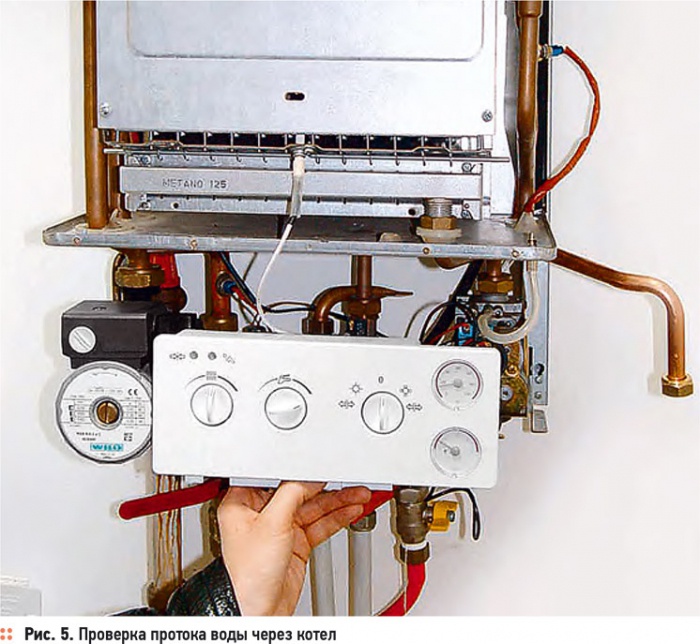 В этом случае вы увидите, с каким протоком выходит вода для нужд ГВС из котла. Зная давление воды или проток на входе в котел, вы сможете сделать соответствующие выводы. Например, на входе в котел давление воды и ее проток соответствуют требованиям, указанным в технических характеристиках оборудования, а на выходе из котла давление воды падает и проток резко уменьшается. Это означает что, скорее всего, покрылся отложениями солей битермический теплообменник.