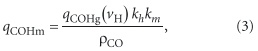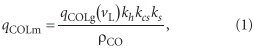 где qCOHg(vH) — выделение угарного газа [г/ч] одним грузовым транспортным средством, является функцией от скорости грузового транспортного средства vH и дорожного уклона; kh — высотный коэффициент; km — массовый коэффициент. Минимальный воздушный поток для снижения концентрации угарного газа, выделяемого всеми грузовыми транспортными средствами в тоннеле, м3/с: