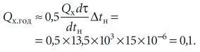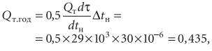 Для проверки этой методики и сравнения с данными СНиП 2301–99 определим годовой расход теплоты по следующей формуле и получаем результат 0,44 млн кВт⋅ч/год:Qт.год ≈ Gпрcв(tк – tн.cp)τнагр = = 7 × 1 × 5740[10 – (–0,9)] × 10–6 = 0,44.Как следует из результатов сравнения расчетов по двум методикам, искомые годовые расходы оказались практически одинаковыми.