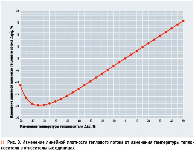 Показано, что при снижении температуры на 5, 10, 20, 30, 40 и 50 % расход теплоносителя необходимо увеличивать на 6,2; 13,1; 30,2; 53,4; 86,7 и 138,3 <%, соответственно.