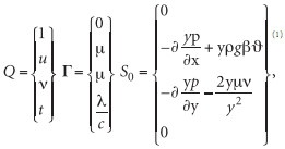 1. гидродинамика и теплообмен в резервуаре с топливом моделируются на основе двухмерных нестационарных уравнений Навье-Стокса, записанных в обобщенном виде: