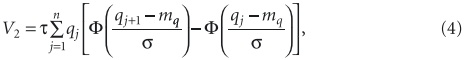 где — интервал времени равный году, за который определяется энергопотребление; j — индекс итерации под знаком суммы; — интегральная функция нормального распределения (значения приводятся в таблицах для нормированной случайной величины, выраженной в кратностях среднеквадратического отклонения); qj+1 – qj = q — шаг итерации; n — число шагов в интервале [0; Qmax]; Hст — давление стабилизации на входе конденсатора; jqjHст — зависимость КПД электронасоса от значений случайной величины qj при законе регулирования Нст. Объем воды для базового варианта определяется по формуле:
