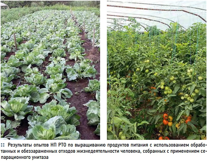 Этот объем достаточен для удобрения 1000 га пашни. Подготовленная урина может полностью заменить применение минеральных форм азотных удобрений. Фекалии 50 тыс. человек (за один год) содержат: азот — 25 т, фосфор — 10 т, калий — 8,5 т. Компост на их основе может быть использован в качестве ценного почвенного кондиционера. Собранный по технологии НП «РТО» ресурс может быть использован не только в сельском хозяйстве.