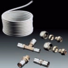 Одним из основных компонентов системы напольного отопления является металлопластиковая труба «Copipe». Труба обладает несомненными достоинствами: отсутствие диффузии кислорода, антикоррозионность, низкий коэффициент линейного расширения. Труба удобна для устройства контуров. Система собирается с использованием прессовых («CofitР») и резьбовых («CofitS») фитингов. Прессовые фитинги используются для соединений труб в стяжке, т.к. являются неразъемными. Резьбовые фитинги применяются для подключения труб к арматуре, гребенкам и т.п.
