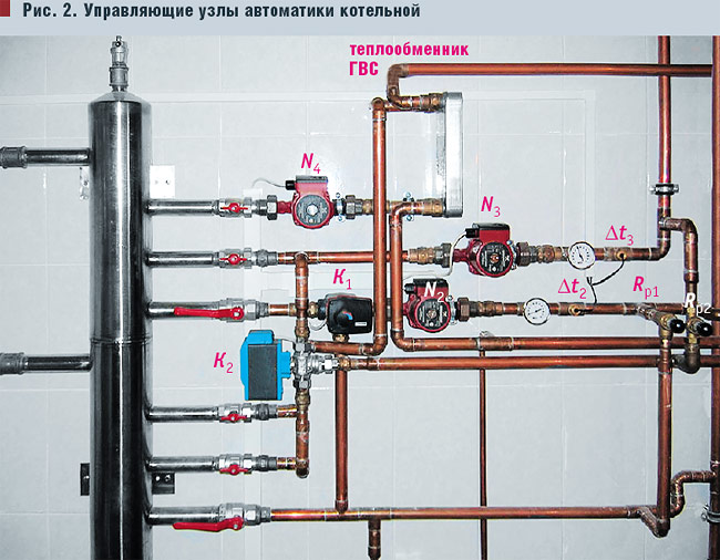 На рис. 2 и 3 показано, как выглядит уже собранная котельная. Теперь рассмотрим работу всех контуров.