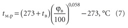 где m — коэффициент, учитывающий долю тепла, поступающего в помещение (при отсутствии опытных данных принимается m = 1); Q — количество избыточного тепла, подлежащее удалению, кДж/кг; Iр.з — теплосодержание воздуха в рабочей зоне, кДж/кг; Iпр — теплосодержание приточного воздуха, кДж/кг.Для предотвращения конденсации влаги на внутренней поверхности окон отопительные приборы должны устанавливаться непрерывной цепочкой под ними, чтобы внутренняя поверхность стекол была нагрета на 1–1,5 °С выше температуры tт.р точки росы, которую удобно вычислять по эмпирической формуле: