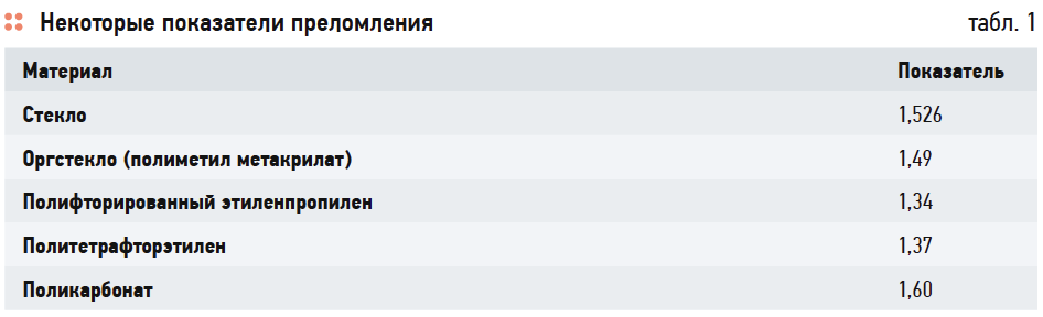 Средние значения показателей преломления n2 некоторых материалов прозрачных покрытий по данным [1] приведены в табл. 1.