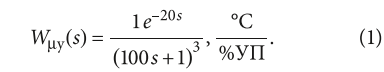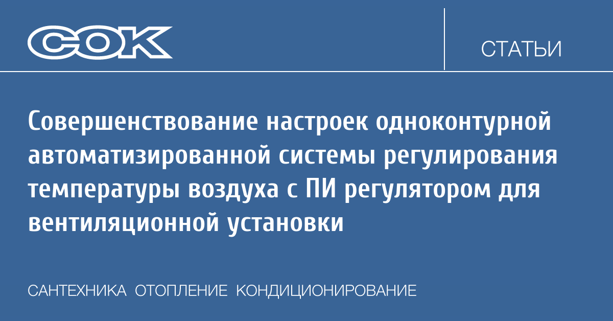 Система регулирования температуры воздуха на выходе из калорифера представляет собой один из базовых элементов в системах подготовки воздуха. Рассмотрим эксплуатацию АСУ ПУВ стандартной комплектации системы в составе с цифровым контроллером. Система автоматического регулирования (АСР) — одноконтурная система с ПИ-регулятором. Одноконтурная система состоит из объекта регулирования (температура воздуха), ПИ-регулятора и отрицательной обратной связи. Передаточная функция сформирована на основании расчётных данных по объекту: