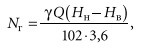 где φ— плотность воды, при t = 20 °C; γ= 0,9982 т/м3; Q — расход воды, м3/год; Hн — давление в напорной линии (до задвижки) м водн. ст.; Hв — давление со стороны всасывания (может быть со знаком «+», при роботе насоса на подпоре, и со знаком «–» при разряжении во всасывающей линии); 102 и 3,6 — переводные коэффициенты.