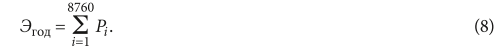 Число часов в году — 8760. Суммарное потребление электроэнергии за год определяем по формуле: