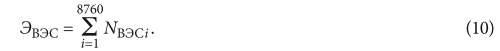 где NВЭC(t) — выработка электроэнергии ВЭС за время ∆t = 1 ч, кВт·ч; n — количество ВЭУ.