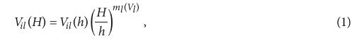 где h — высота измерений скоростей ветра, h = 10 м; Н — высота башни ВЭУ, м; i — порядковый номер скорости в ряду наблюдений; l — номер месяца; Vil(H) и Vil(h) — скорости ветра на площадке ВЭС на высотах H и h; ml(Vl) — эмпирическая зависимость (модель) среднемесячного показателя степени m от среднемесячной скорости ветра на высоте h. Модель ml(Vl) может быть получена по данным аэрологической метеостанции (АМС) аналога или группы АМС. Получение эмпирической зависимости показателя степени ml(Vl) основано на расчётно-статистическом определении внутригодовой закономерности изменения среднемесячного значения показателя степени ml от среднемесячной скорости ветра Vl на высоте h для отдельных АМС или групп АМС, расположенных в идентичных климатических, географических и топографических условиях. Данные для расчёта показателей степени ml взяты из действующей базы данных ВИК, находящейся в посёлке Тикси.