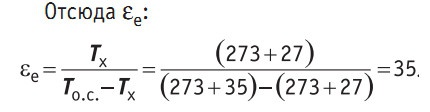 Определим эксергетический холодильный коэффициент для температурных параметров систем кондиционирования воздуха. Стандартные температурные условия испытания кондиционеров: температура внутреннего воздуха +27°С, температура наружного воздуха +35°С.