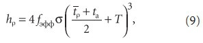 Из приведенных формул очевидным является с увеличением радиационного фактора рост температуры поверхности ограждающих конструкций, что обуславливает потери тепла за счет их теплопроводности. В результате выигрыш энергии, расходуемой на подогрев приточного воздуха, оказывается связанным с повышенными кондуктивными теплопотерями. Количественно энергетический баланс определяется значениями hp и hc, выражаемыми следующим образом