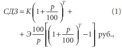 Расчет следует вести при условии использования заемных средств на сооружение вентустановок и приведения СДЗ к концу рассматриваемого временного интервала Т по следующей формуле [3]: