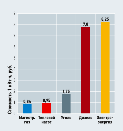 В статье «Тепловые насосы IGC как альтернатива традиционному оборудованию» [1] мы уже приводили график стоимости 1 кВт·ч при использовании различных источников энергии (рис. 2). Сравнение стоимости 1 кВт·ч полезного тепла при различных вариантах теплоснабжения показывает, что по уровню расходов теплонасосные установки, как правило, уступают только магистральному газу.