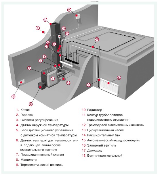- регулирование с помощью трехходового смесителя и комплекта автоматики;