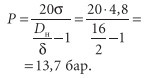 Например, металлопластиковая труба PEX-AL-PE наружным диаметром Dн = 16 мм, с толщиной стенки d = 2 мм, транспортирующая жидкость с температурой 95°С, в начальный период эксплуатации способна выдержать избыточное давление:
