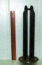 Применение специального изолятора позволило увеличить удельный тепловой поток в несколько раз без превышения рабочей температуры спиралей из нихрома, т.е. не снижая ресурса работы ТЭНа. При разработке узла крепления ТЭНов основное внимание было уделено его надежности. Благодаря конструктивным решениям и применению при сборке современных технологий узлы ТЭНов проходят испытания при опрессовочном давлении 18 атмосфер (рабочее давление, согласно ГОСТу и техническим условиям, 2 атмосферы). Все вышеперечисленное привело к уменьшению габаритов и веса котла и, соответственно, металлоемкости и цены.