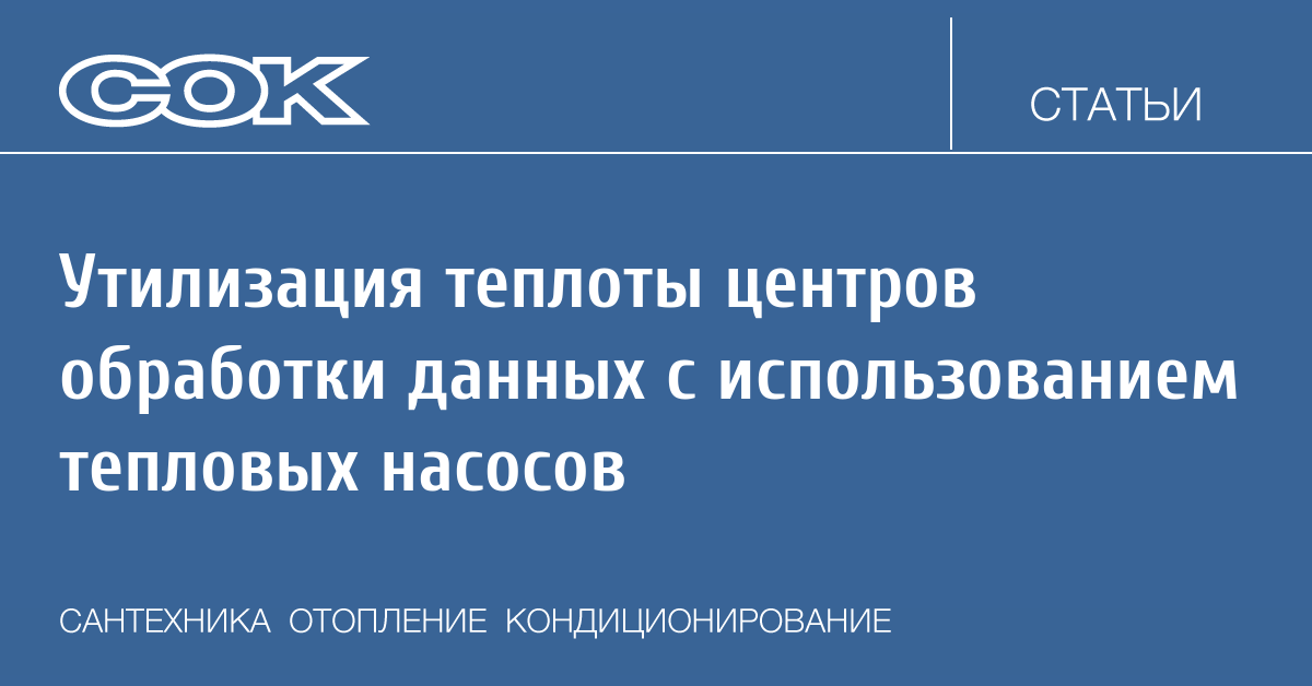 Проанализированы перспективные методы утилизации вентиляционных выбросов: применение тепловых насосов и теплообменников-утилизаторов. Рассмотрены принципы отвода теплоты от оборудования центров обработки данных: жидкостное охлаждение, теплообменники и фрикулинг, а также оборудование утилизационных установок и критерии их энергетической эффективности.