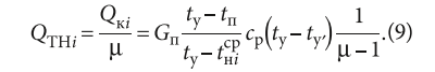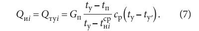 Тепловая мощность [ кВт], передаваемая в теплообменнике-утилизаторе при температуре наружного воздуха tcpнi [°C] промежуточному теплоносителю и испарителю теплового насоса: