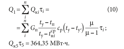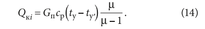 где μ — коэффициент трансформации энергии теплового насоса при температуре промежуточного теплоносителя на входе в испаритель, μ = 3,5.
